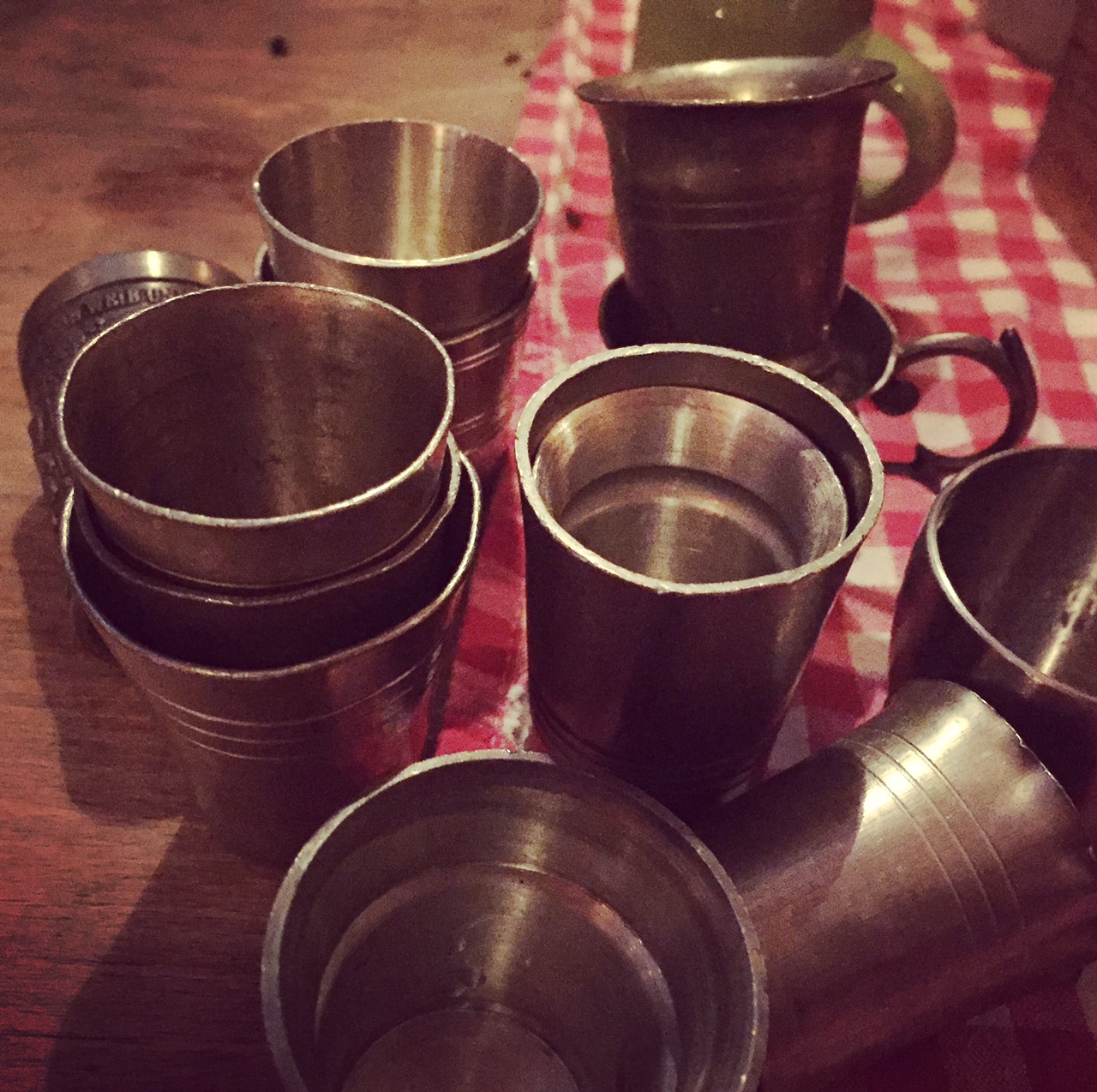 Leere Stamperl – der Wirt gab viel Schnaps aus.